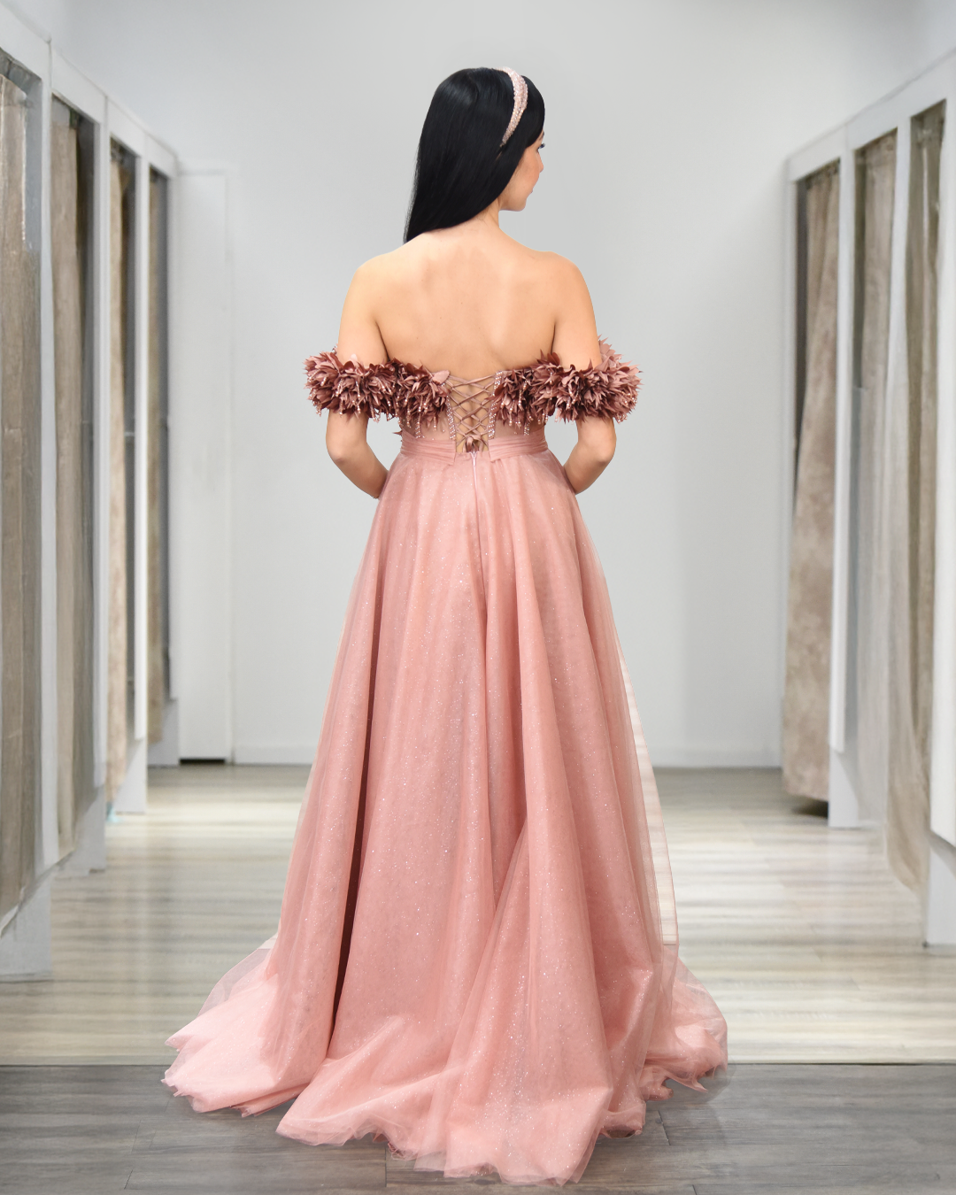 Elegantes A-Linien-Kleid mit funkelndem Glitzertüll, das zeitlose Silhouette mit modernem Glamour verbindet. Der fließende Schnitt schmeichelt der Figur und bietet optimalen Tragekomfort für besondere Anlässe. Der hochwertige Glitzertüll verleiht dem Kleid eine raffinierte Ausstrahlung und fängt das Licht wunderbar ein. Perfekt für Hochzeiten, Galas oder festliche Events, bei denen Sie im Mittelpunkt stehen möchten.